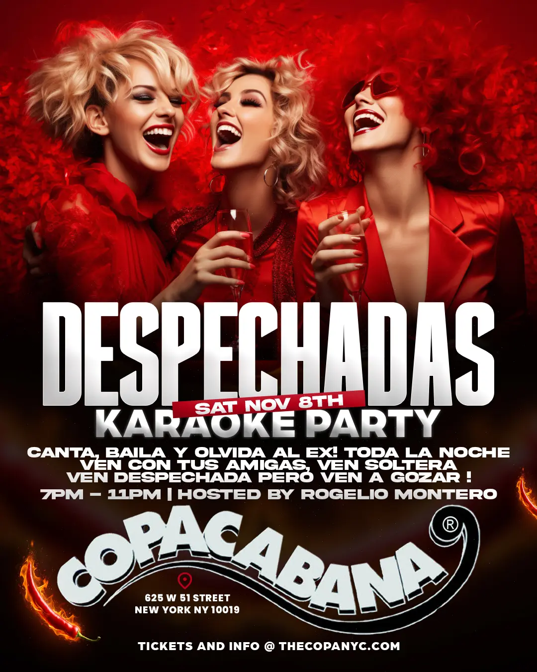 IMusic and Passion were always in Fashion, At the Copa, Copacabana! Join us for the Official Copacabana Events hosted by the Legendary Owner John Juliano & nightlife impresario Ruben Rubin Cabrera. Musical voyage provided by Resident DJs. Dance to Salsa, Bachata, Disco & More. Experience The sound, sights, and rhythm of the Iconic Copacabana. Be...